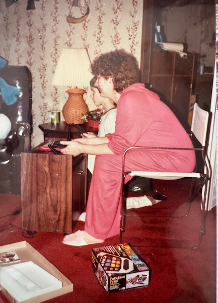 I remember the Intellivision fondly. It was THE only gift I wanted from Santa one Christmas when I was little. I wanted one really really bad. And lucky for me, Christmas did not disappoint! That said, this photo from that Christmas still makes me laugh: there’s me, waiting for a turn on my fancy new video game system while my mom was playing instead.